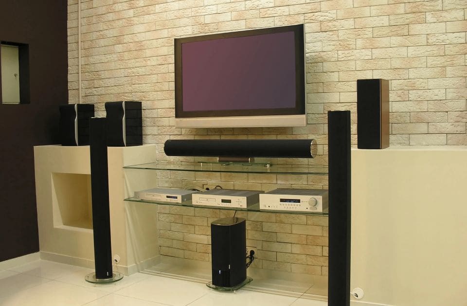 Custom home audio installation delivers balanced surround sound for movies, music, and sports.